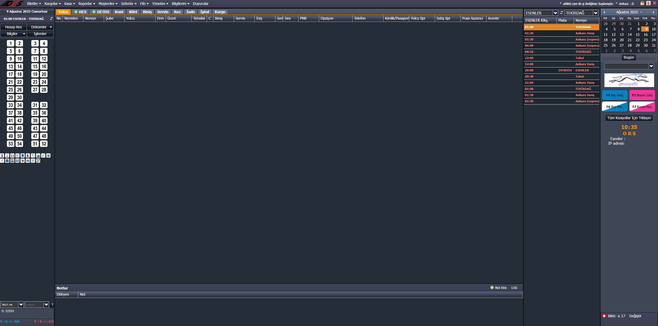 ORS ile bilet, rezervasyon, kasa ve raporlarınızı zahmetsizce yönetin. Otobüs firmaları için geliştirilen bu sistem, tüm şube ve kullanıcıların işini kolaylaştırır.